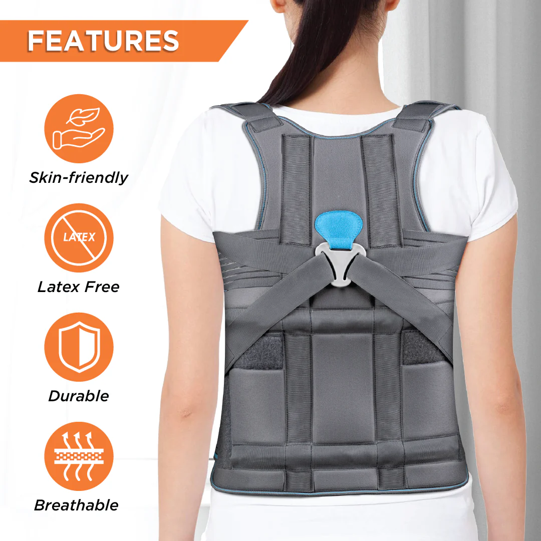 Latex-free double-covered Lycra is blended with composite yarn to make the lightweight Spinal Brace material durable, breathable & skin-friendly. The Orthopedic Braces crochet elastic undergoes a special coat to make the material last longer and has customizable splints.
